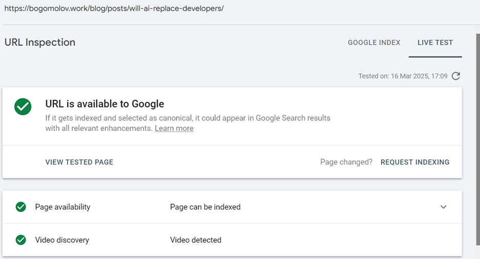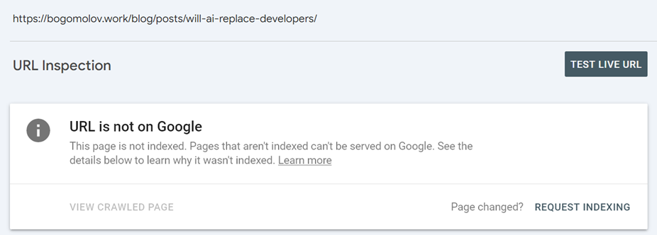 But in my experience it’s never works, sometimes submitting new url directly thru UI helps, after several attempts and time. For example last one from 2025-03-12, it was submitted manually