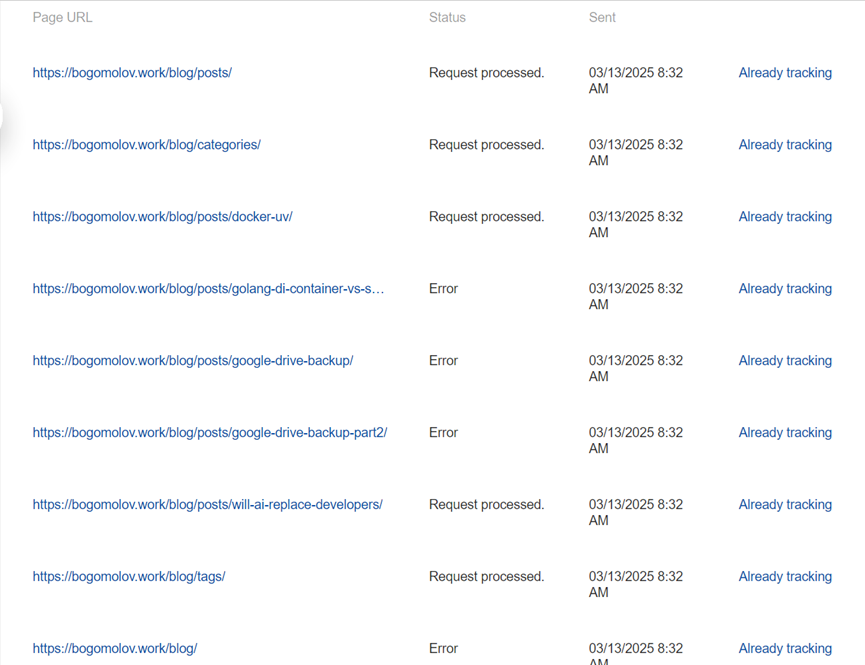 In this article I want to share my experience of using search engine consoles, continuing an idea from a recent Telegram post. Maybe this could reduce frustration for someone, reassuring them that they’re not alone - or even save them some time.